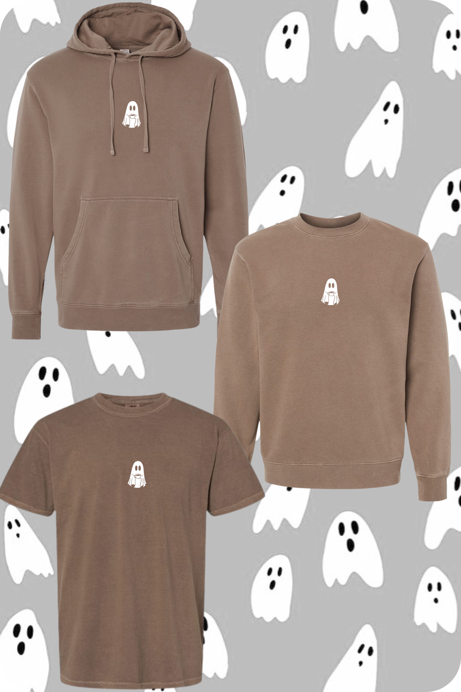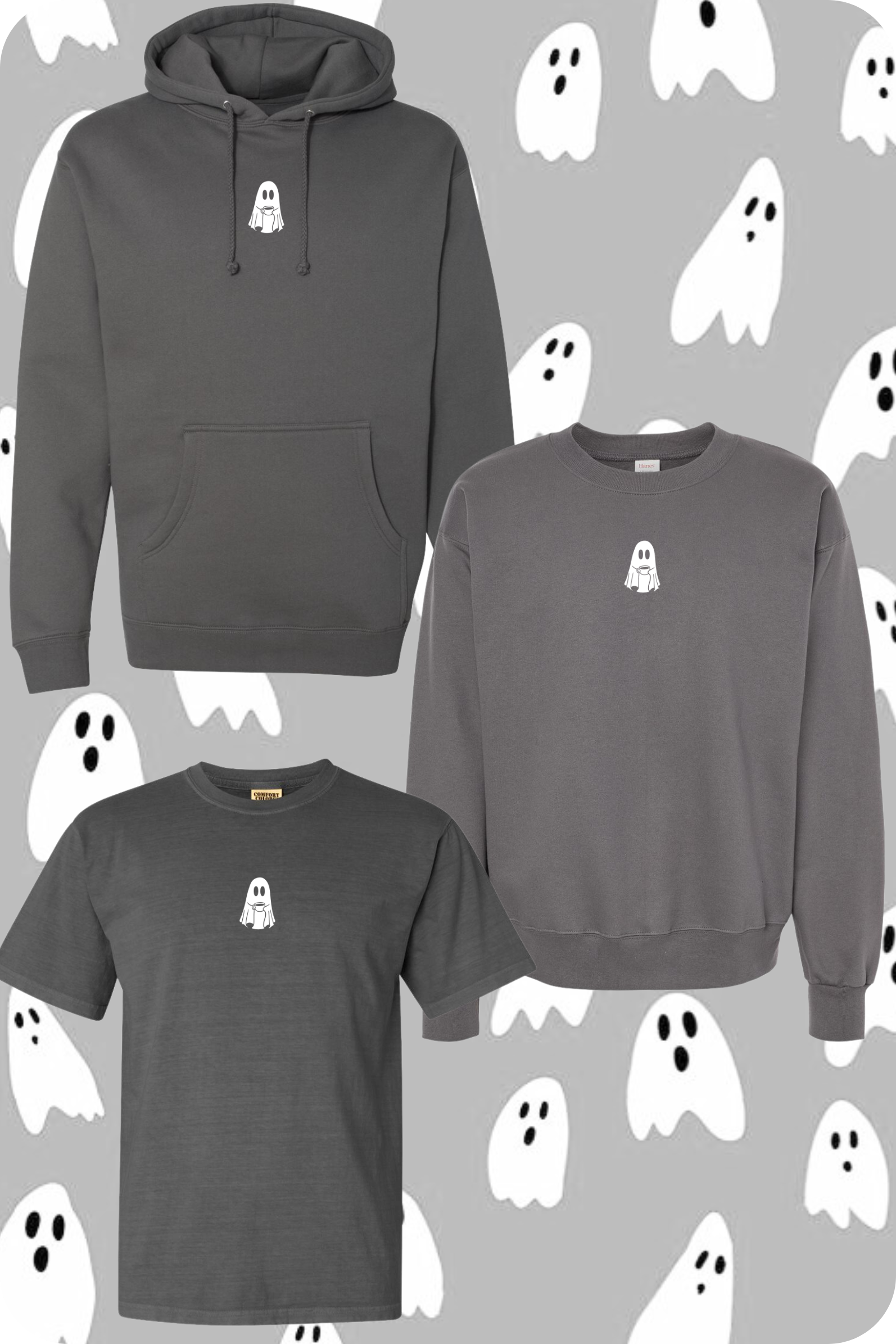 *T-Shirt is unisex COMFORT COLORS, Crewneck sweatshirt is unisex HANES (INDPT TRAD CO. for Light Brown), Hooded sweatshirt is unisex INDEPENDENT TRADING CO. (Brands may be substituted if stock is not available)