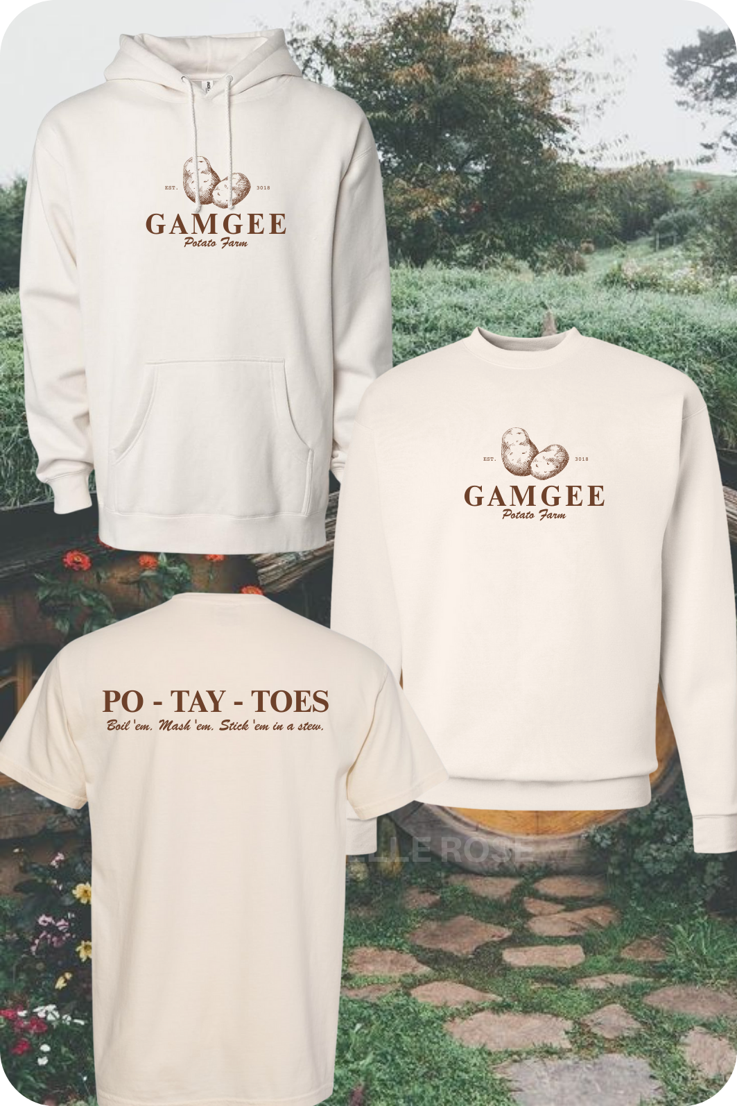 *T-Shirt is unisex Comfort Colors, Crewneck sweatshirt is unisex Jerzees & Hooded sweatshirt is unisex Hanes (Brands may be substituted if stock is not available)
